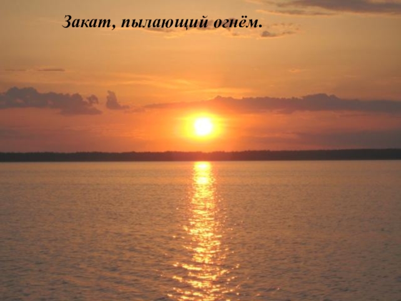 Слайд 5Закат, пылающий огнём.