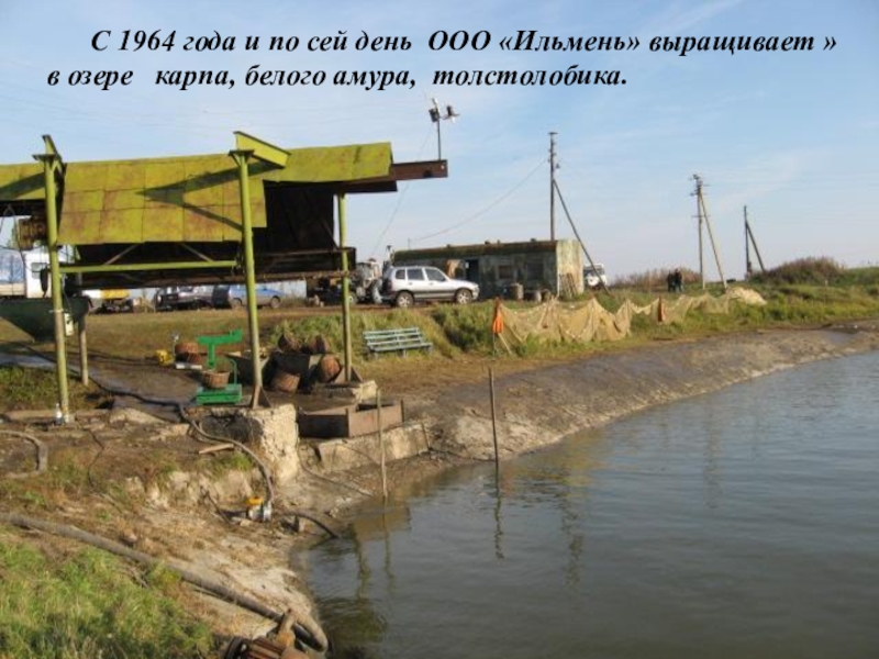 С 1964 года и по сей день ООО «Ильмень» выращивает » в озере  карпа, белого амура,