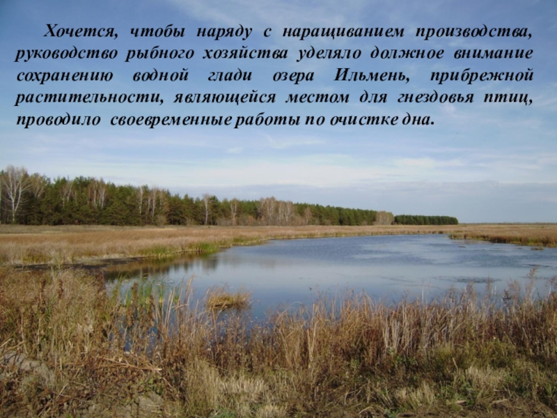 Слайд 15 Хочется, чтобы наряду с наращиванием производства, руководство рыбного хозяйства уделяло должное