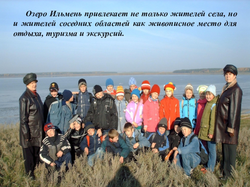 Слайд 14 Озеро Ильмень привлекает не только жителей села, но и жителей соседних