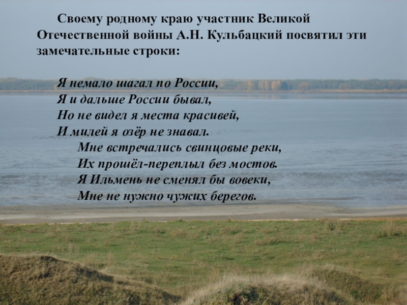 Слайд 11 Своему родному краю участник Великой Отечественной войны А.Н. Кульбацкий посвятил эти