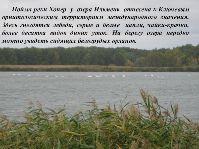 Слайд 8 Пойма реки Хопер у озера Ильмень отнесена к Ключевым орнитологическим территориям