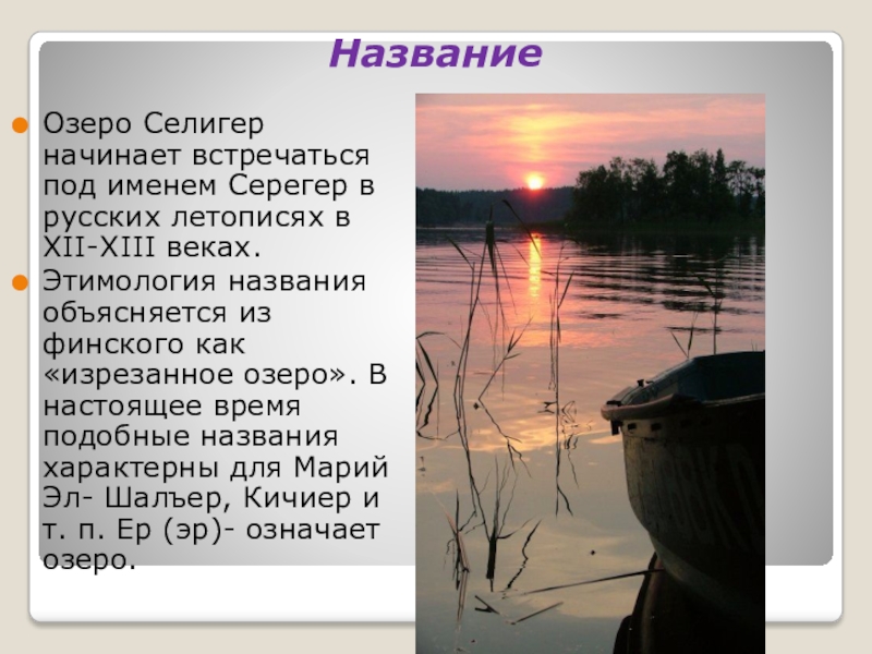 Озеро Селигер начинает встречаться под именем Серегер в русских летописях в
