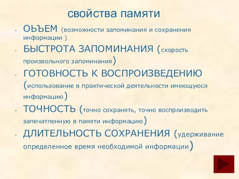 свойства памяти
