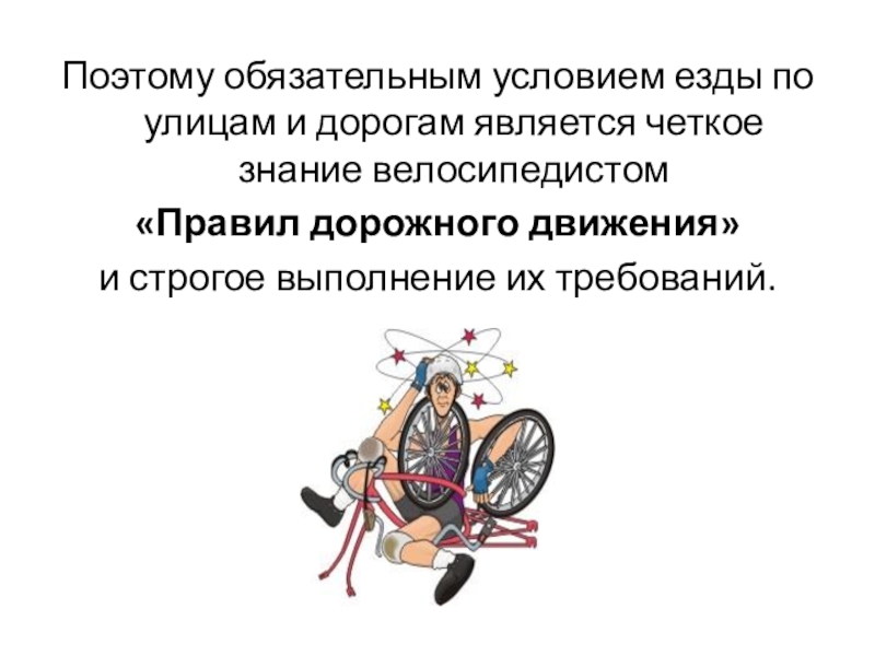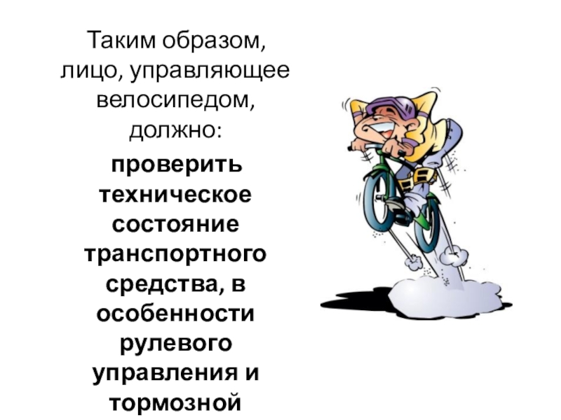 Слайд 3 Таким образом, лицо, управляющее велосипедом, должно:
