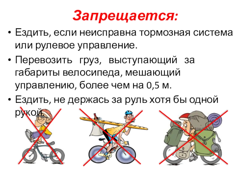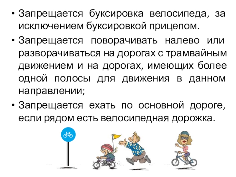 Слайд 7Запрещается буксировка велосипеда, за исключением буксировкой прицепом.