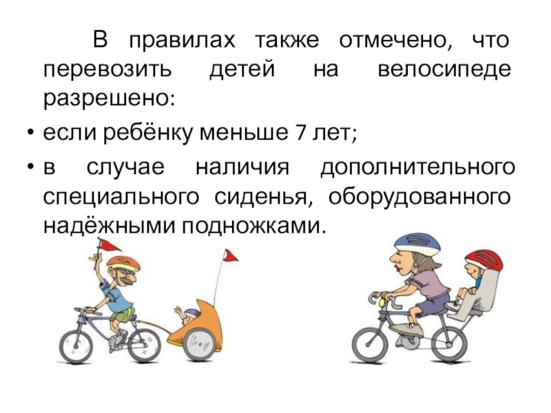 Слайд 5 В правилах также отмечено, что перевозить детей на велосипеде