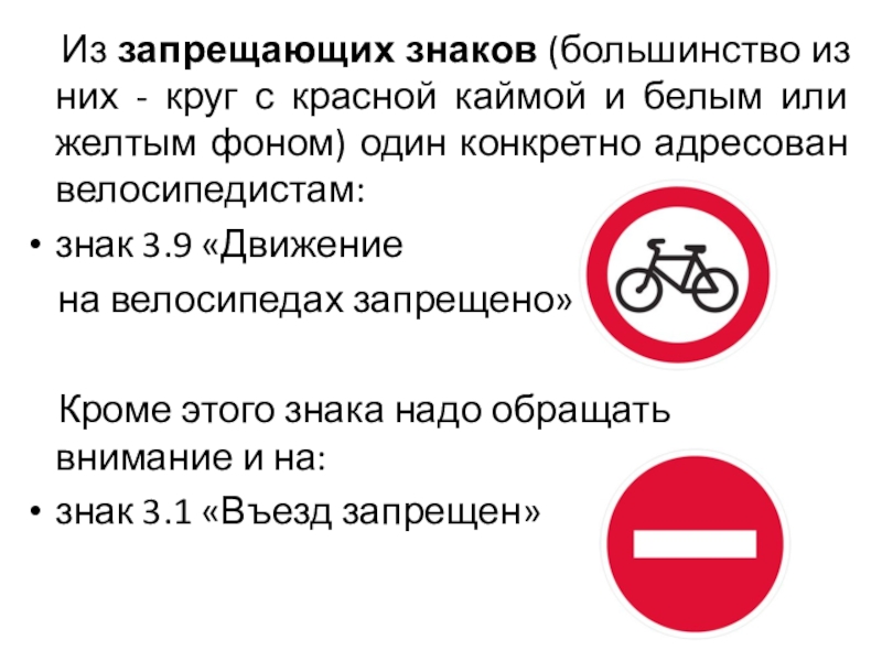 Слайд 11 Из запрещающих знаков (большинство из них - круг с