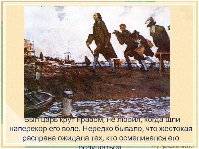 Слайд 13 Был царь крут нравом, не любил, когда шли наперекор его воле.