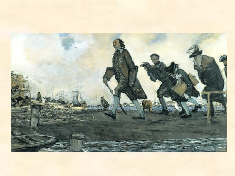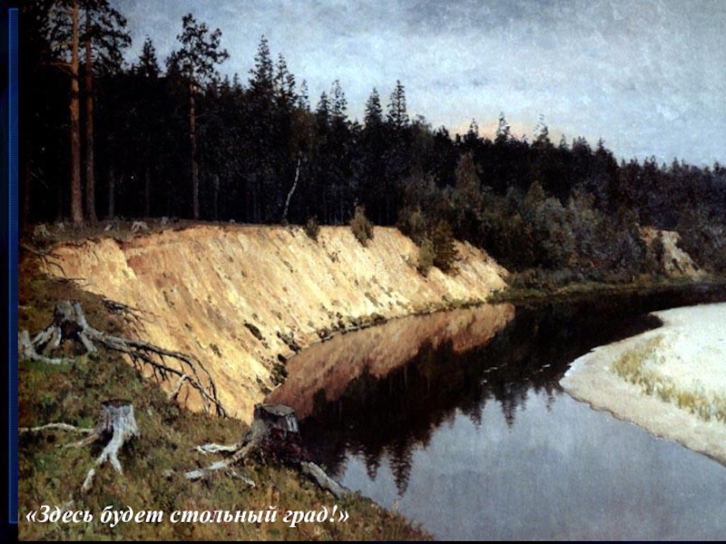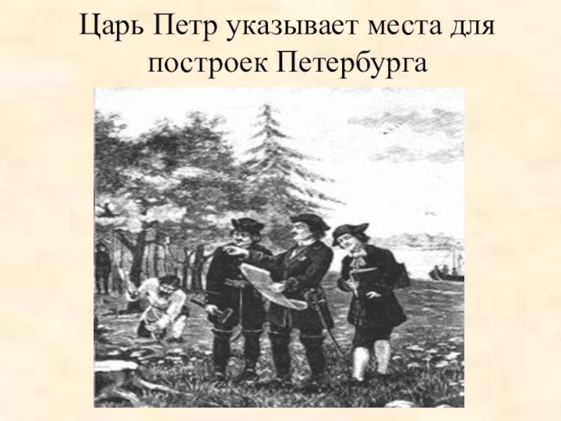 Слайд 9Царь Петр указывает места для построек Петербурга
