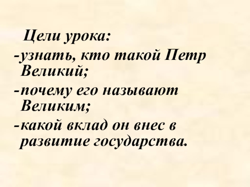 Цели урока:узнать, кто такой Петр Великий;почему его называют Великим;какой вклад он внес