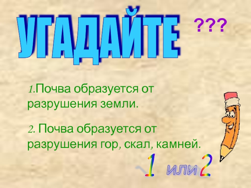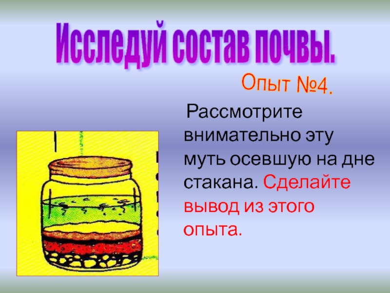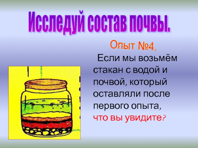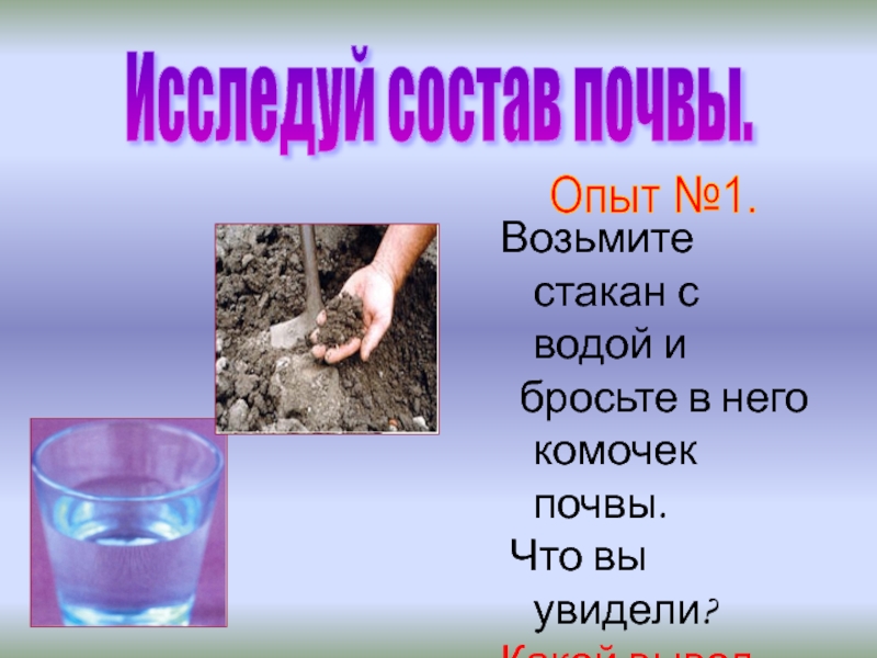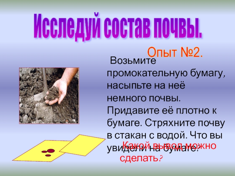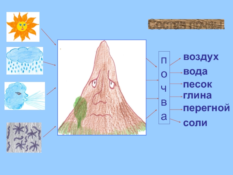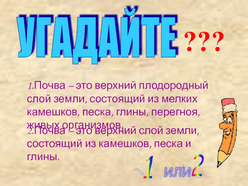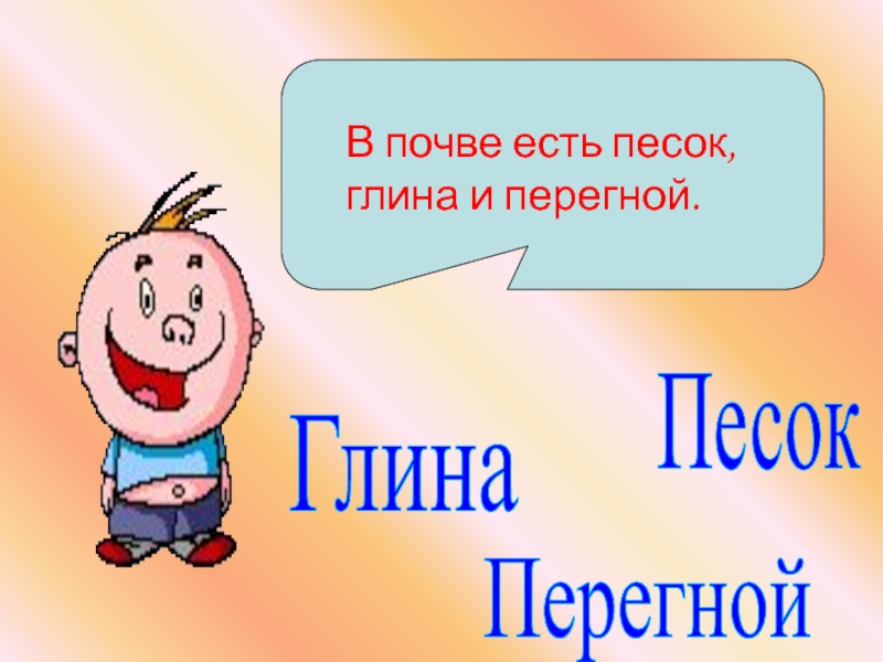 2.Почва – это верхний слой земли, состоящий из камешков, песка и глины.