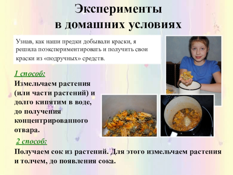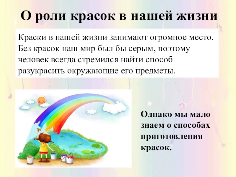 Изучение красок, используемых в повседневной жизни, получение и применение красок из природных материалов.