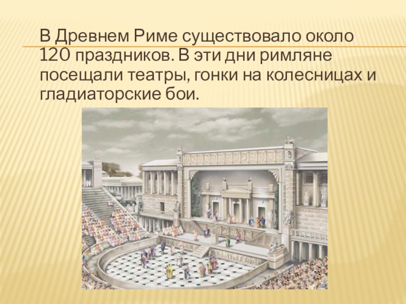 Слайд 16 В Древнем Риме существовало около 120 праздников. В эти