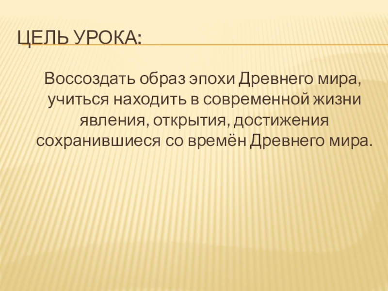 Воссоздать образ эпохи Древнего мира, учиться находить в