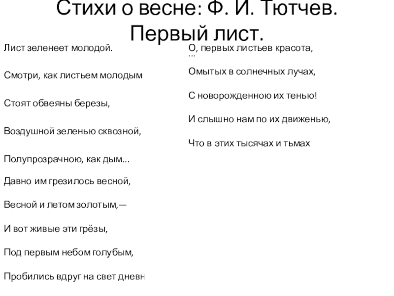 О, первых листьев красота,