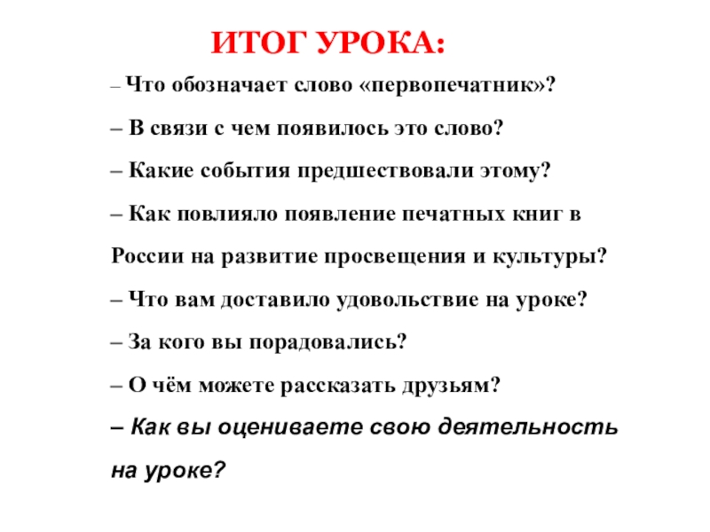 ИТОГ УРОКА: