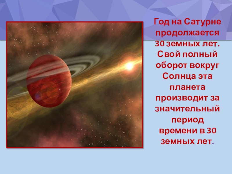 Слайд 5Год на Сатурне продолжается 30 земных лет.
