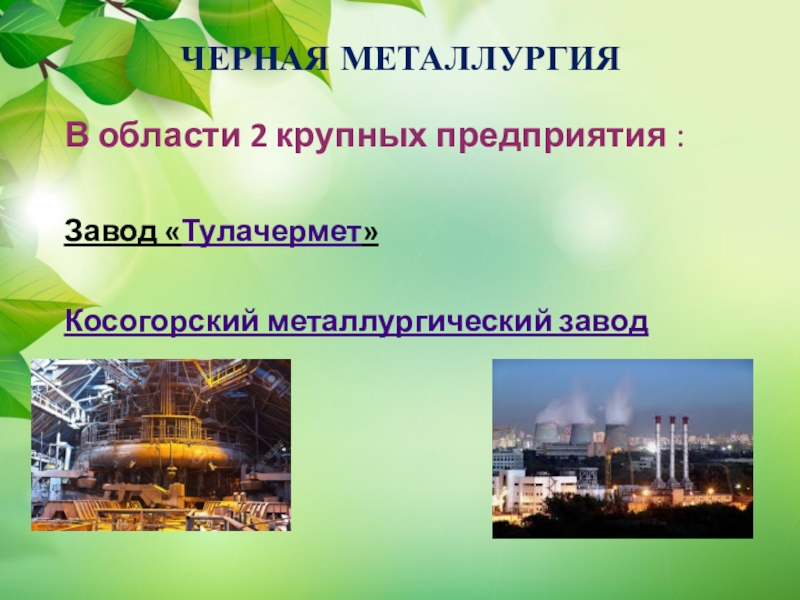 г. Новомосковск, «Тулачермет» (г. Тула), «Черепетская ГРЭС» (г. Суворов), «Косогорский металлургический завод» (г. Тула).