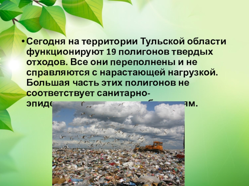 Слайд 25Сегодня на территории Тульской области функционируют 19 полигонов твердых отходов. Все