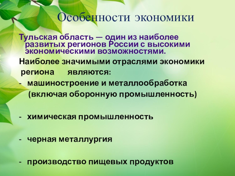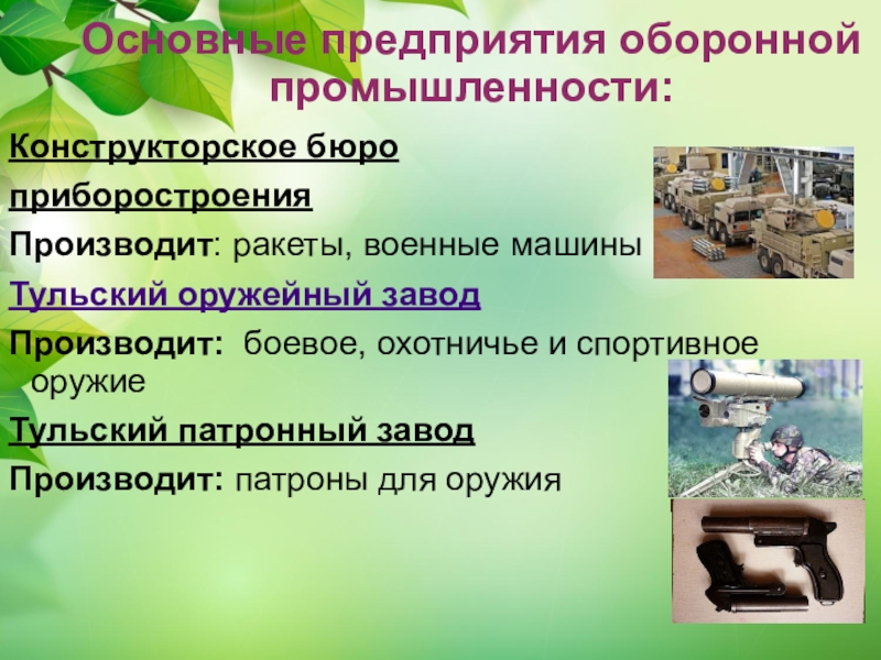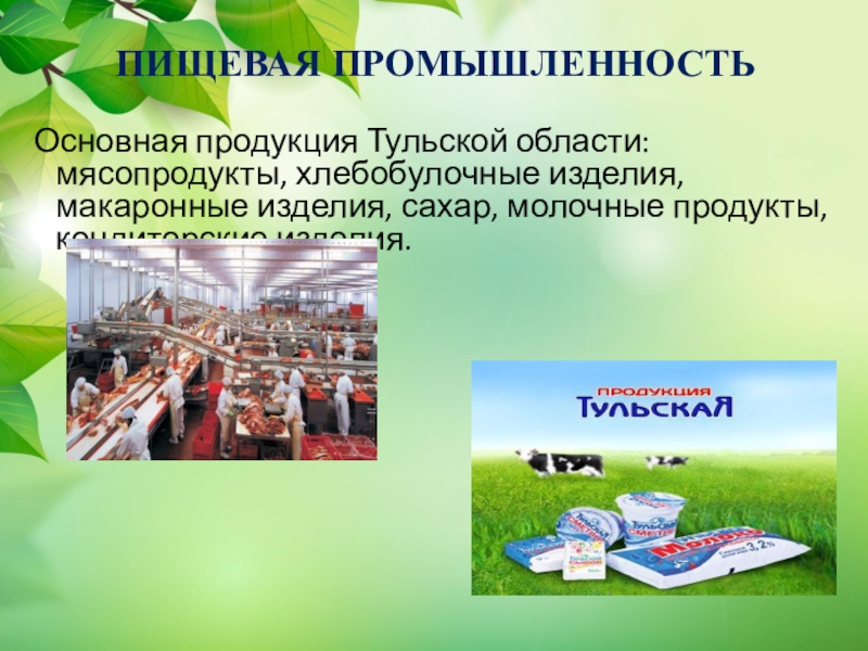 Основная продукция Тульской области: мясопродукты, хлебобулочные изделия, макаронные изделия, сахар,
