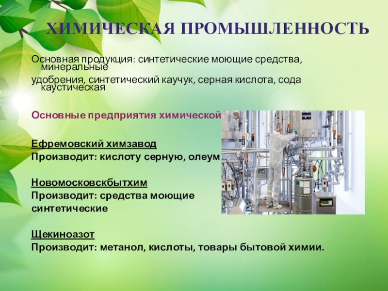 Слайд 19ХИМИЧЕСКАЯ ПРОМЫШЛЕННОСТЬ