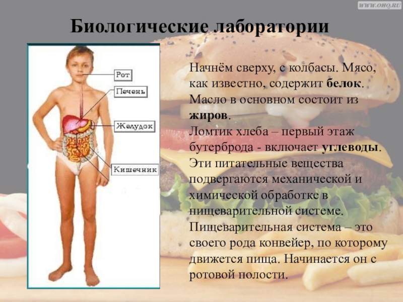 Начнём сверху, с колбасы. Мясо, как известно, содержит белок.