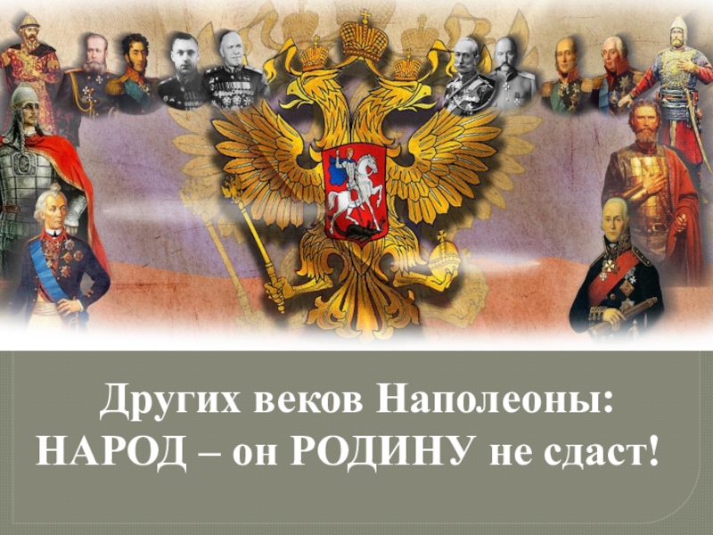 Других веков Наполеоны:НАРОД – он РОДИНУ не сдаст!