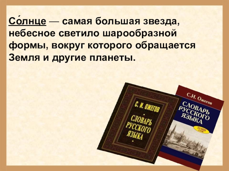 Со́лнце — самая большая звезда, небесное светило шарообразной формы, вокруг которого обращается Земля и другие планеты.