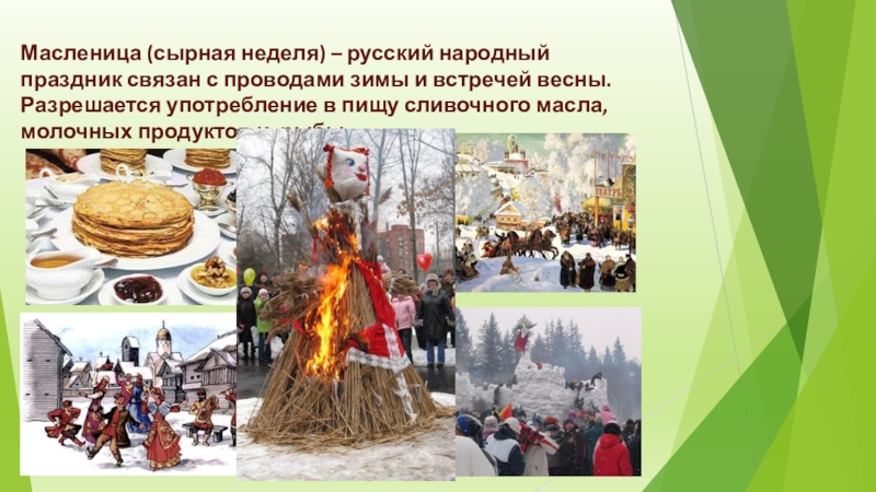 Слайд 14Масленица (сырная неделя) – русский народный праздник связан с проводами зимы