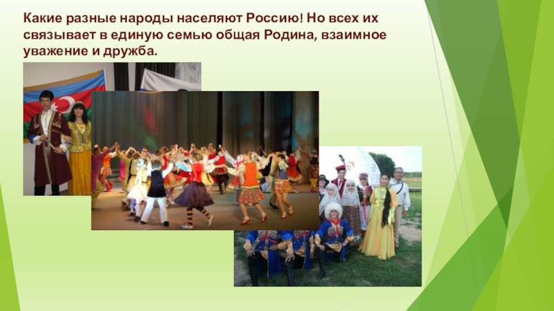 Слайд 20Какие разные народы населяют Россию! Но всех их связывает в единую