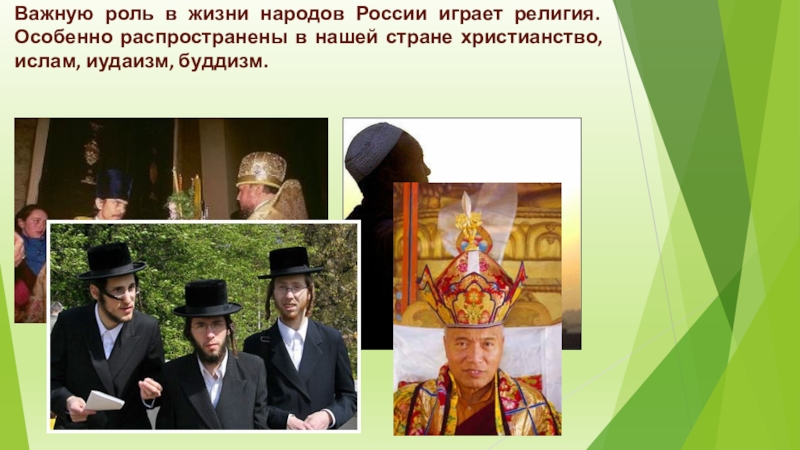 Слайд 19Важную роль в жизни народов России играет религия. Особенно распространены в