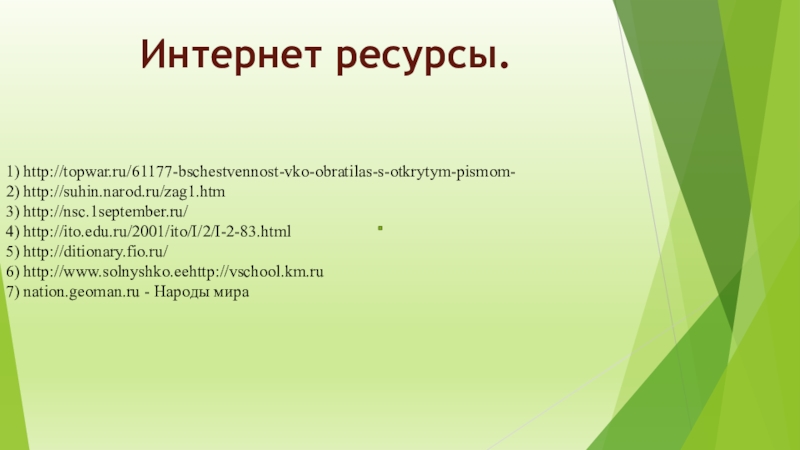6) http://www.solnyshko.eehttp://vschool.km.ru