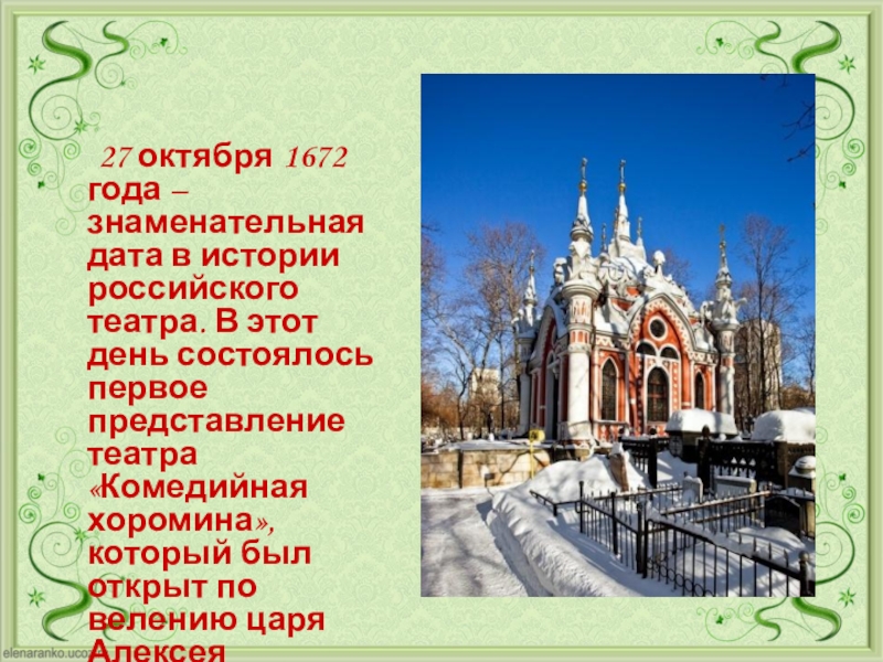 Слайд 18 27 октября 1672 года – знаменательная дата в истории российского театра.
