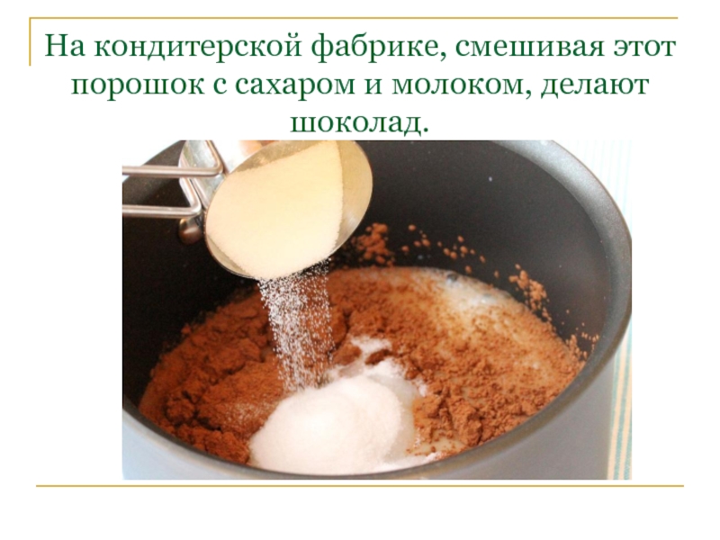 Слайд 5На кондитерской фабрике, смешивая этот порошок с сахаром и молоком, делают