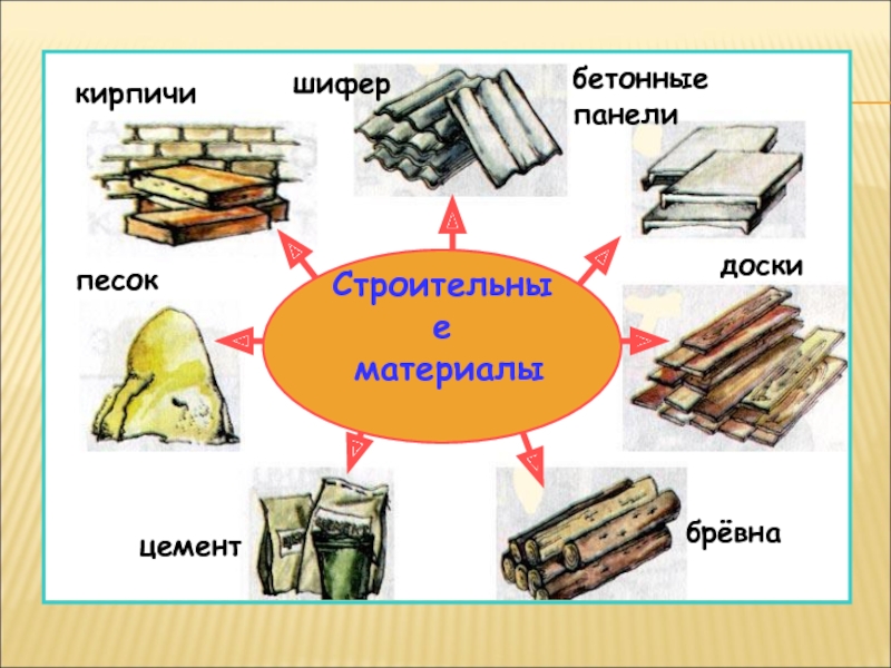 Строительные материалыкирпичипесокшифербетонные панелидоскибрёвнацемент