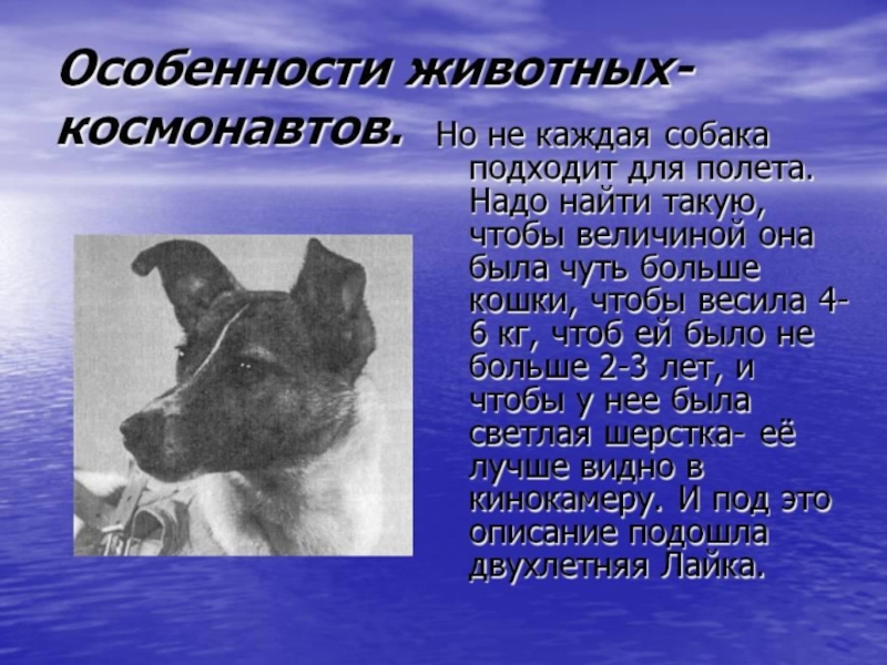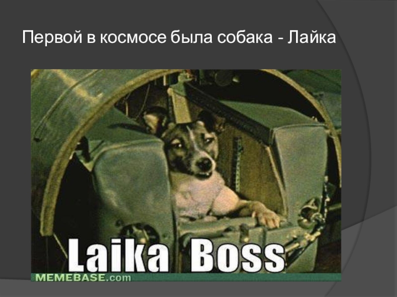 Слайд 15Первой в космосе была собака - Лайка