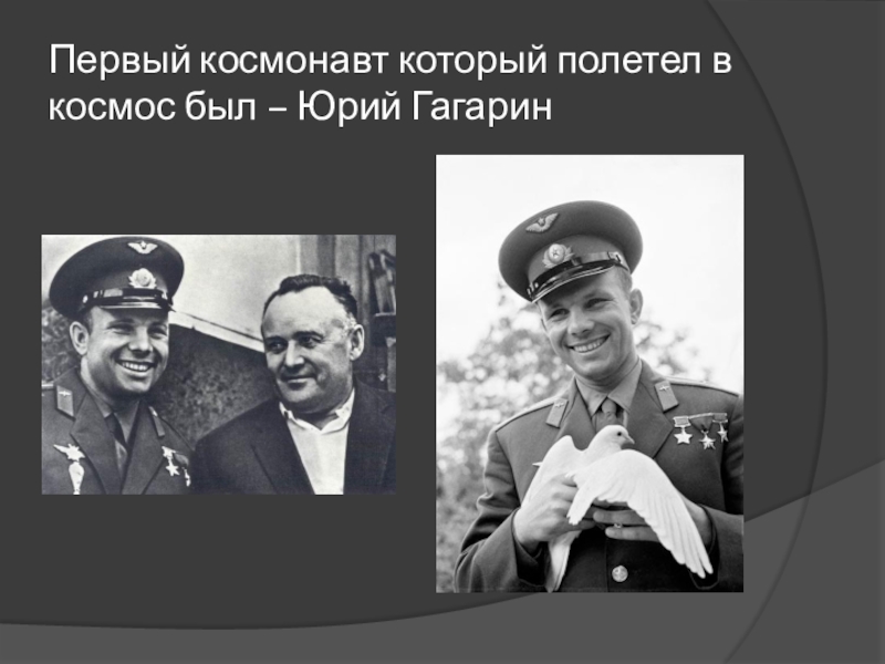 Слайд 20Первый космонавт который полетел в космос был – Юрий Гагарин