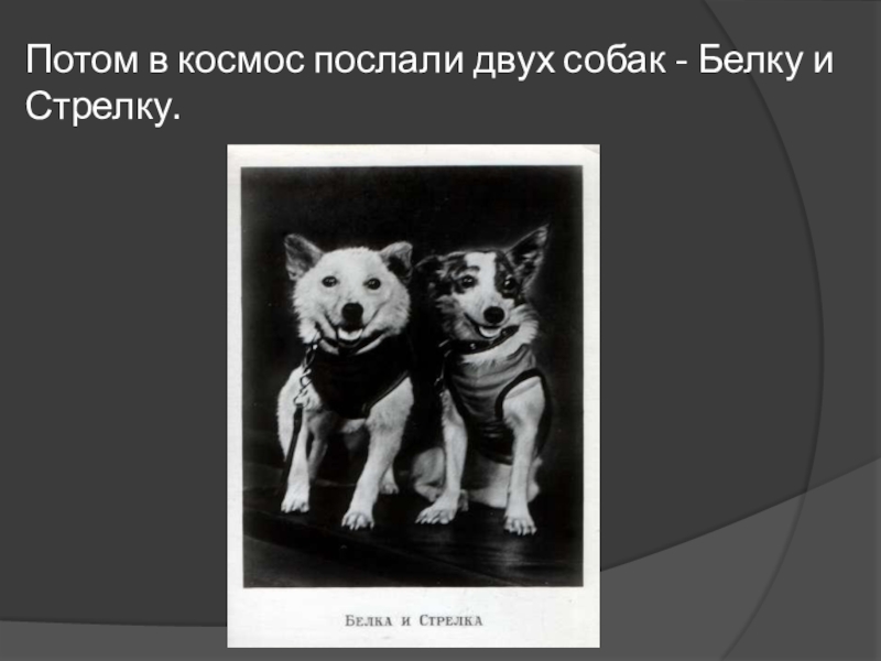 Слайд 17Потом в космос послали двух собак - Белку и Стрелку.