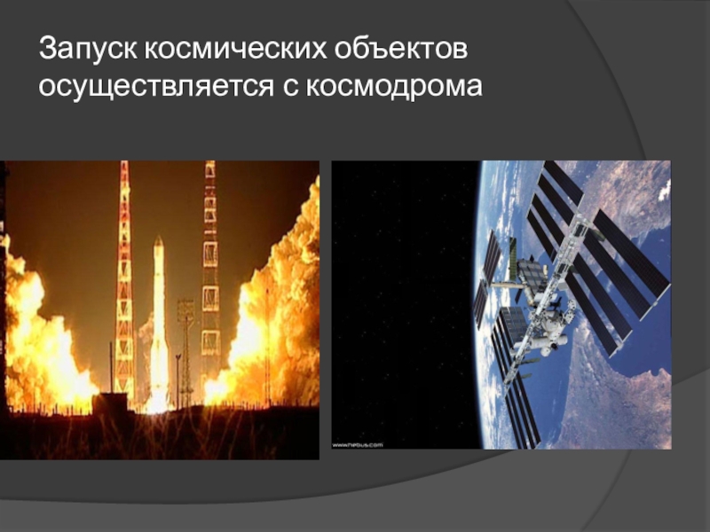 Слайд 31Запуск космических объектов осуществляется с космодрома