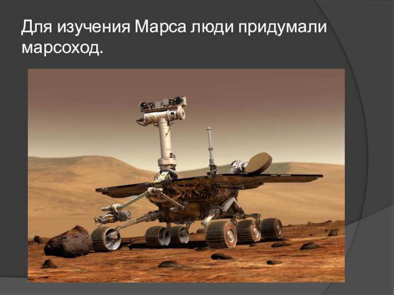 Слайд 32Для изучения Марса люди придумали марсоход.
