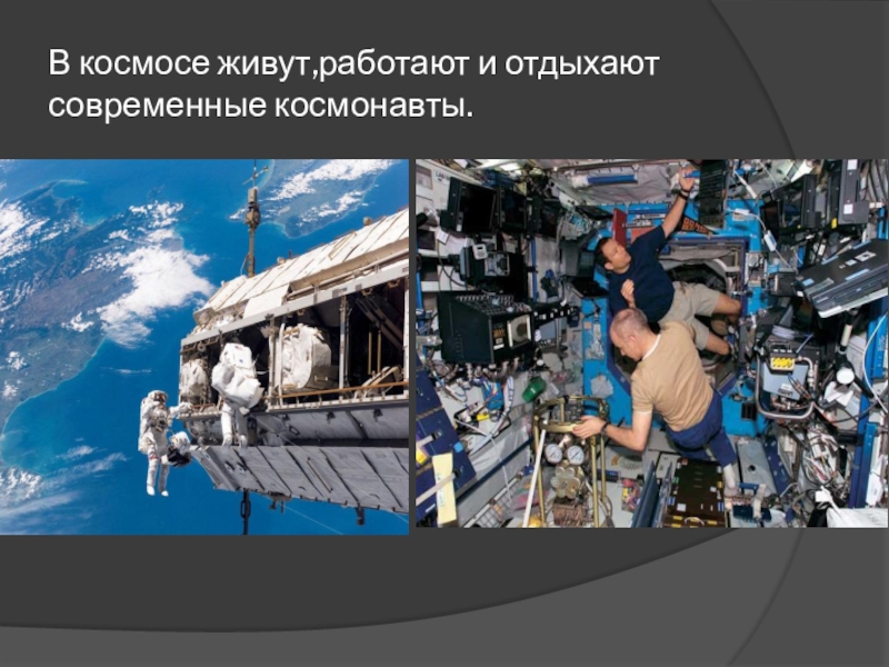 Слайд 28В космосе живут,работают и отдыхают современные космонавты.