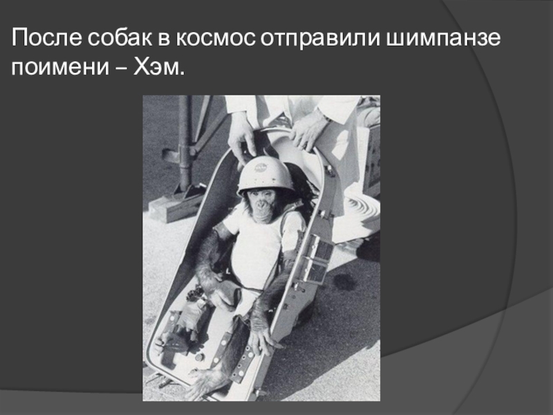 Слайд 18После собак в космос отправили шимпанзе поимени – Хэм.