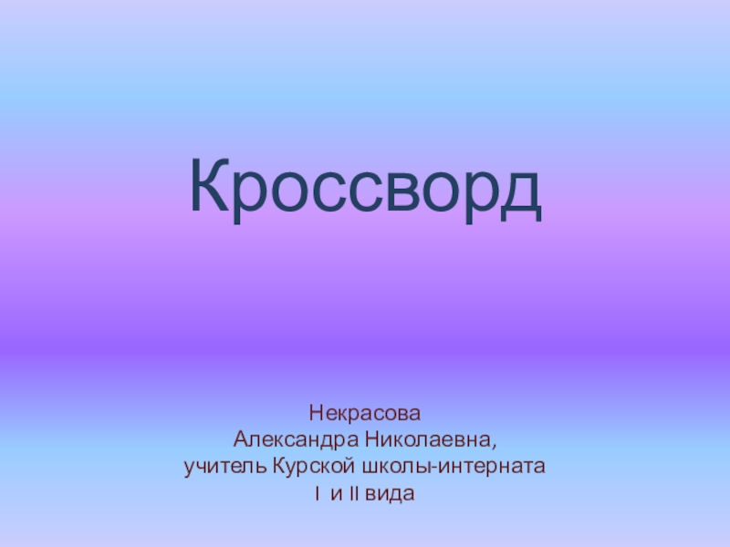 Кроссворд НекрасоваАлександра Николаевна,учитель Курской школы-интерната I и II вида