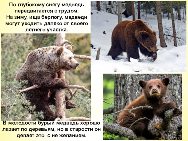 На зиму, ища берлогу, медведи могут уходить далеко от своего летнего участка.