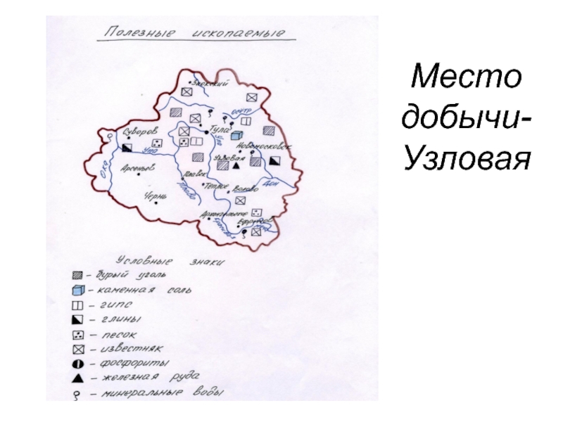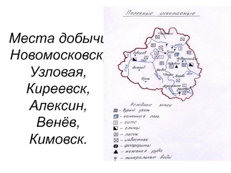 Слайд 6Места добычи: Новомосковск, Узловая, Киреевск, Алексин, Венёв, Кимовск.