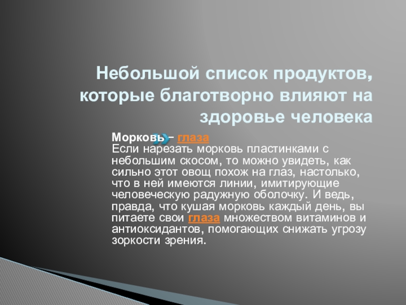 Слайд 3Небольшой список продуктов, которые благотворно влияют на здоровье человека