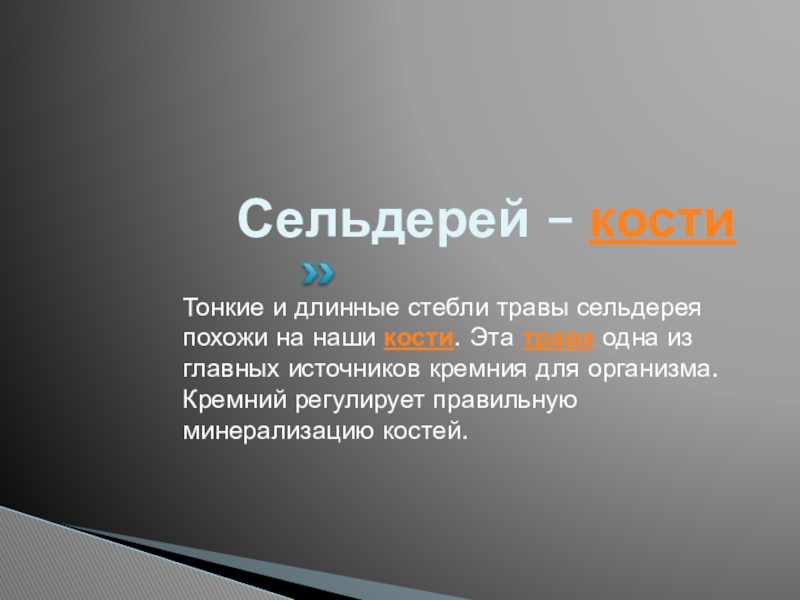 Тонкие и длинные стебли травы сельдерея похожи на наши кости. Эта трава одна