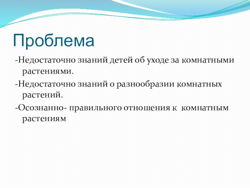 -Недостаточно знаний детей об уходе за комнатными растениями.