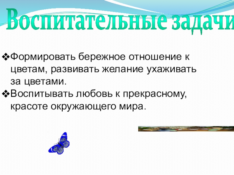 Формировать бережное отношение к цветам, развивать желание ухаживать за цветами.